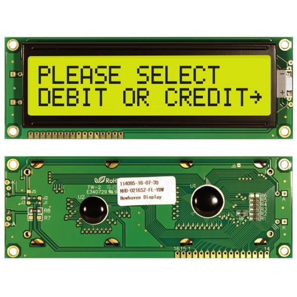 NHD-0216SZ-FL-YBW, Модули сивольных ЖК-дисплеев и комплектующие STN- Y/G Transfl 122.0 x 44.0