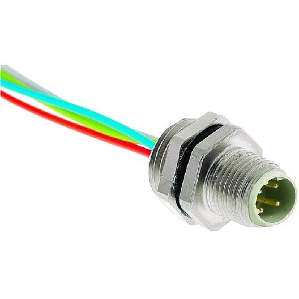 21033711403, Цилиндрические метрические разъемы 4p Male M12 D-Code Panel Feed through