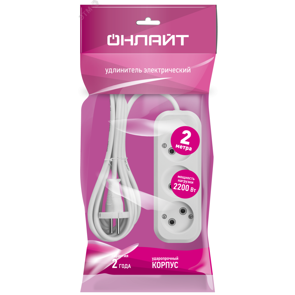 Доставка Удлинитель бытовой OPE-S-03-200-X-2x1 без заземления 3 розетки 2м ПВС 2х1 2200Вт 33272