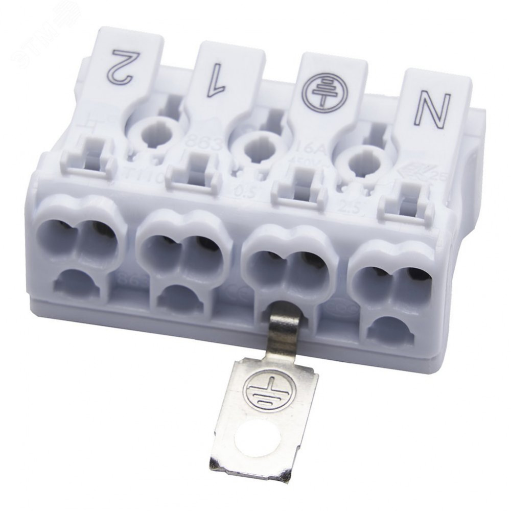 Клемма монтажная с заземлением, 4 контактные группы, 32958, Строительно-монтажная клемма и скрутка