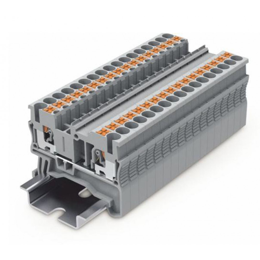 Проходная клемма, тип фиксации провода: Push-in, номинальное сечение: 2,5 мм кв., 24A, 800V, ширина: 5,2 мм, цвет: серый, тип монтажа: DIN35