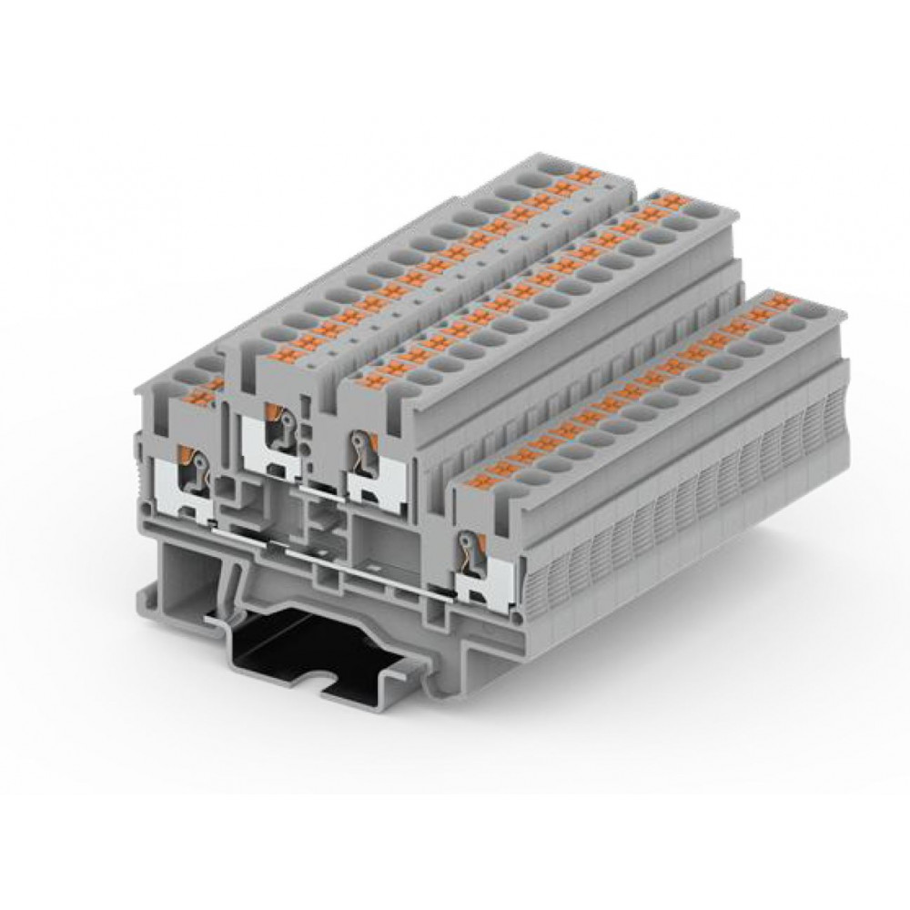 Этажная клемма PTPD2.5-2-GY, Этажная клемма, 2 этажа, 4 точки подключения, тип фиксации провода: Push-in, номинальное сечение: 2,5 мм кв., 22A, 500V, ширина: 5,2 мм, цвет: серый, тип монтажа: DIN35