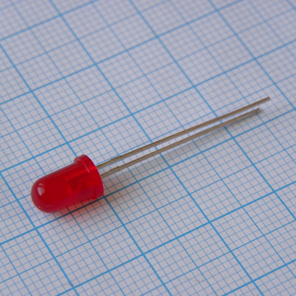 Светодиод 5мм/красный/640нм/480-600мкд/30°