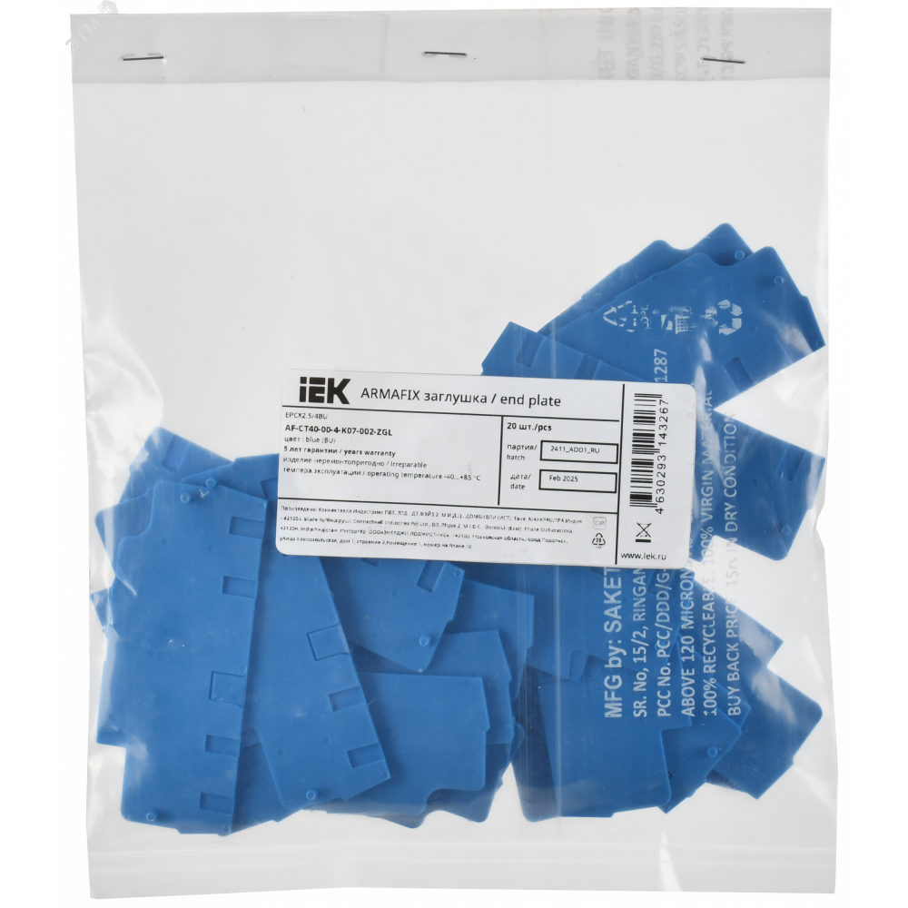 ARMAFIX Заглушка EPCX2.5-4 BU для колодки клеммной CP/CX2.5-4 синяя IEK AF-CT40-00-4-K07-002-ZGL, Аксессуар для клеммы