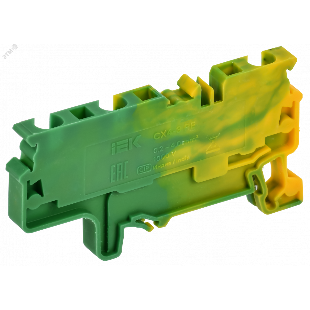 ARMAFIX Клемма пружинная CX4-3 PE 4мм2 трехконтактная заземляющая IEK AF-CT41-00-3-K52-004, Клемма на DIN-рейку