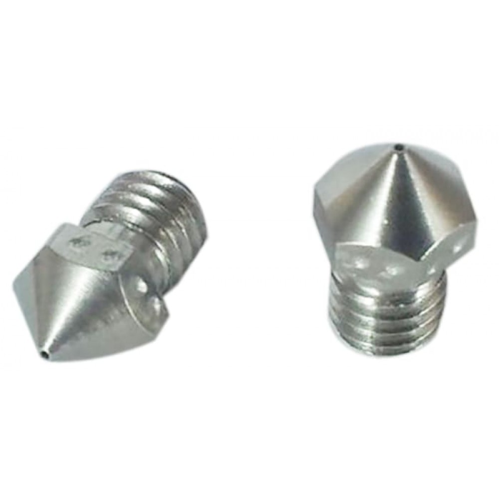 With this special stainless steel nozzle, you can print faster, the plastic flows much more easier than in classic nozzles. You can also clean it efficiently with cold pulls (or atomic pulls). The geometry of the inside makes it easier to get rid of plastic so changing colours or filament type is done faster and safer