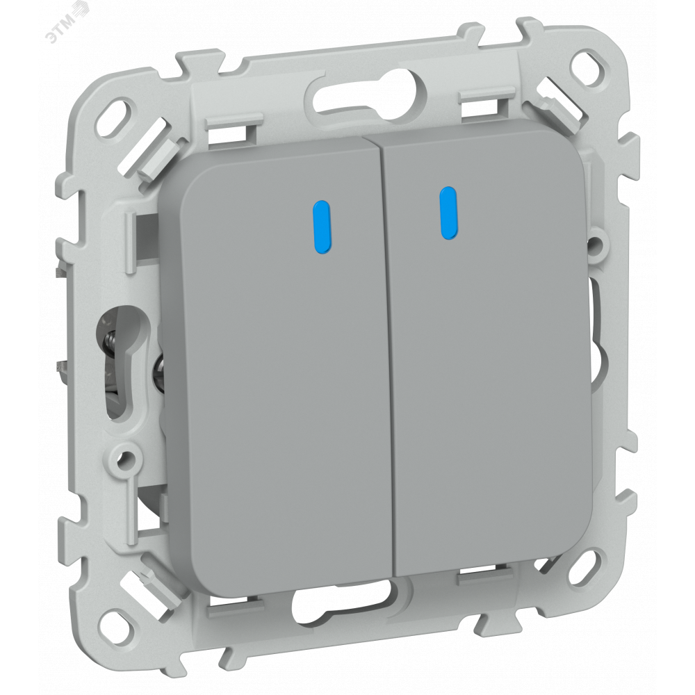 FLITE Выключатель 2-клавишный с индикацией 10А ВС12-1-1-ФлС серый IEK FI-V20-1-10-1-K03, Выключатель и переключатель скрытого монтажа