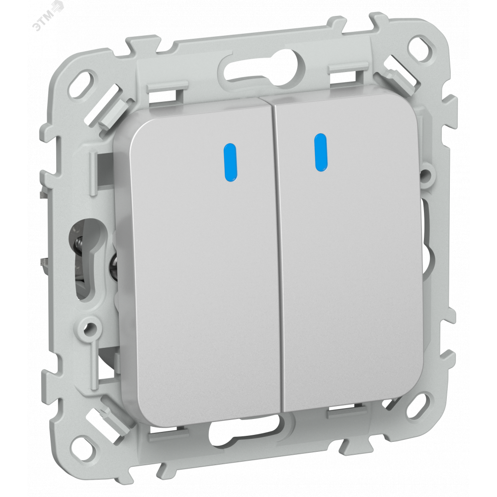 FLITE Выключатель 2-клавишный с индикацией 10А ВС12-1-1-ФлА алюминий IEK FI-V20-1-10-1-K47, Выключатель и переключатель скрытого монтажа