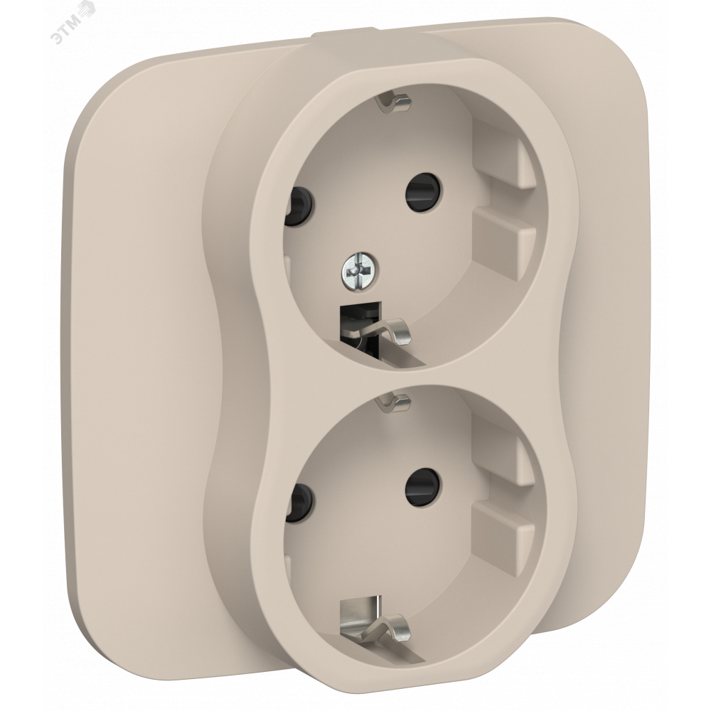 Описание FLITE Розетка 2-местная с заземлением с защитными шторками безвинтовое крепление 16А в сборе РСш12-1-А-ФлЛ льняной IEK FI-R24A-16-1-K88
