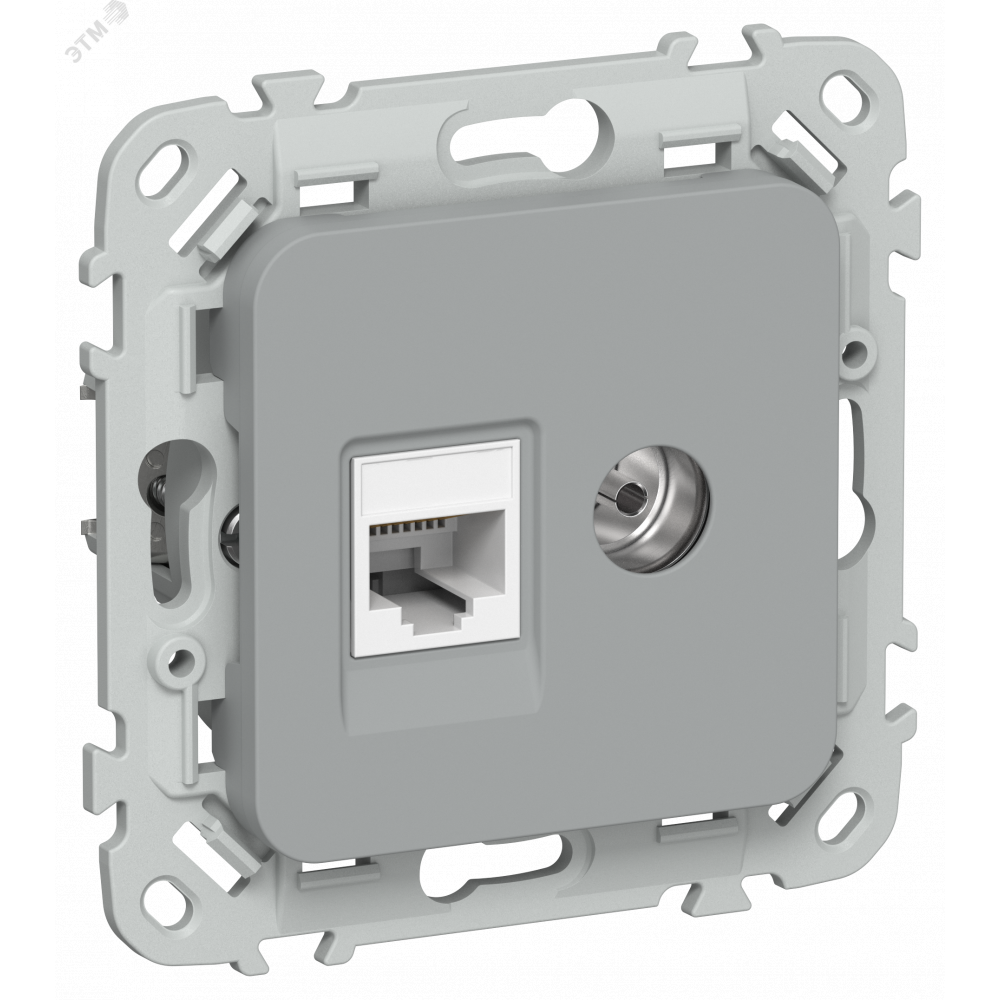 Описание FLITE Розетка 2-местная RJ45/TV категория 5Е UTP РКТВ5е-2-0-ФлС серый IEK FI-AK22-1-K03