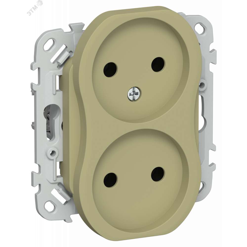 FLITE Розетка 2-местная без заземления без защитных шторок безвинтовое крепление 10А РС02-1-ФлО оливковый IEK FI-R20-10-1-K26, Розетка скрытого монтажа