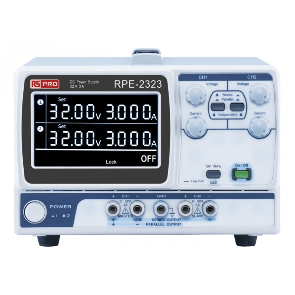 RS PRO Multiple Output Linear DC Power Supply From RS PRO, comes a range of high quality and economical multiple output linear DC power supplies with LCD display screens. Manufactured to industry standards these DC power supplies feature output power from 192 to 217 watts, three independent isolated output channels, high resolution, low noise, high reliability, and are a compact size.