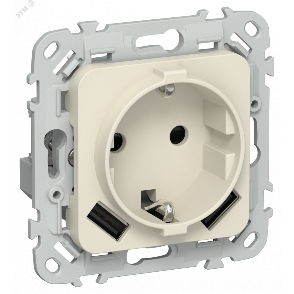 Описание FLITE Розетка 1-местная с заземлением с защитными шторками 16А с USB A+A 3,1А безвинтовое крепление РСЮша11-1-ФлСл сливочный IEK FI-R14-16-1-U21-D31-K86