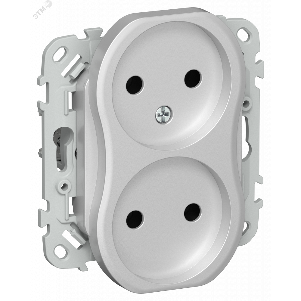 FLITE Розетка 2-местная без заземления без защитных шторок безвинтовое крепление 10А РС02-1-ФлА алюминий IEK FI-R20-10-1-K47, Розетка скрытого монтажа