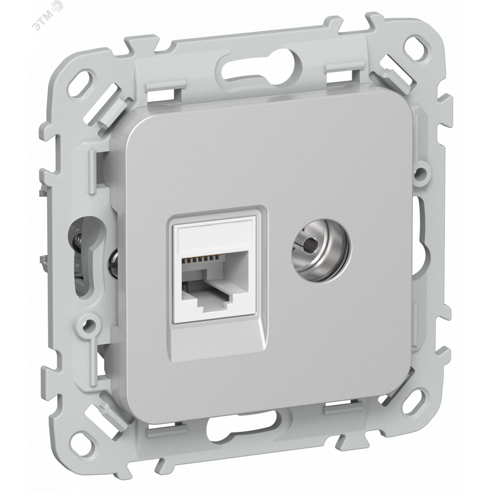 Описание FLITE Розетка 2-местная RJ45/TV категория 5Е UTP РКТВ5е-2-0-ФлА алюминий IEK FI-AK22-1-K47