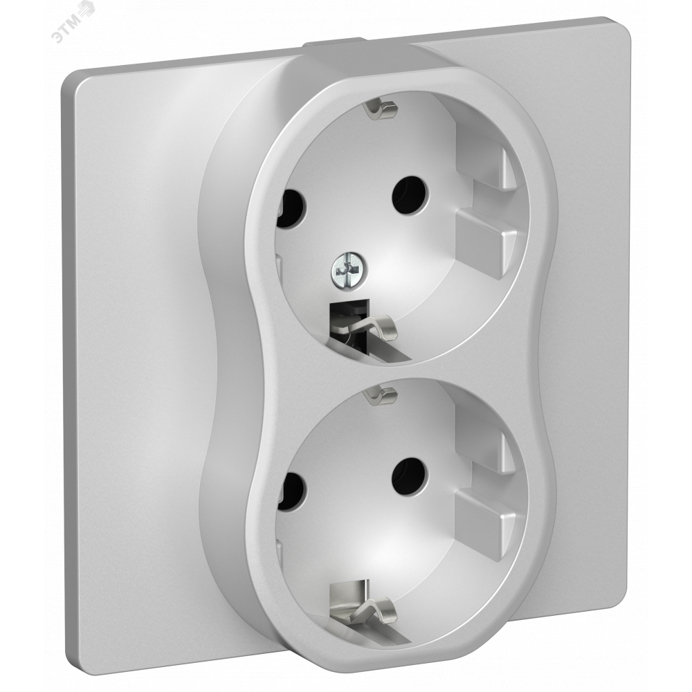 FLITE Розетка 2-местная с заземлением без защитных шторок безвинтовое крепление 16А в сборе РС12-1-К-ФлА алюминий IEK FI-R21C-16-1-K47, Розетка скрытого монтажа