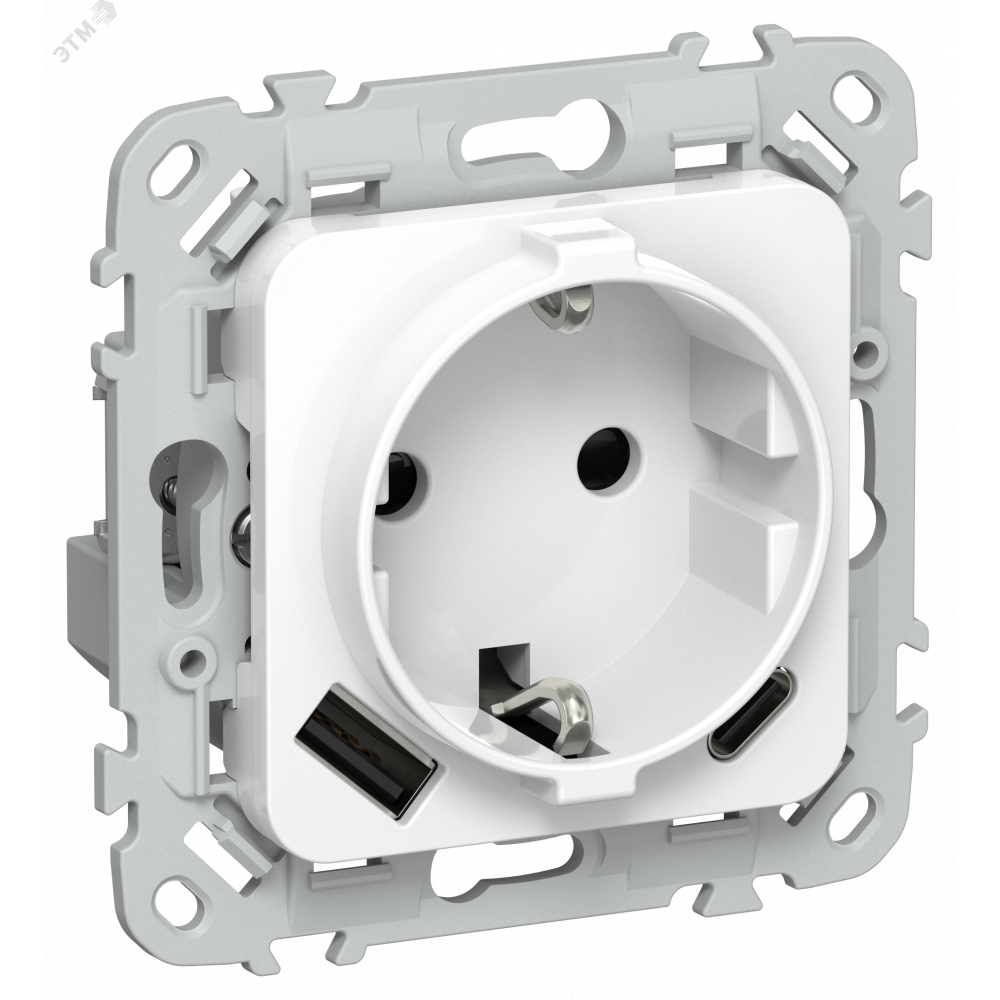 Описание FLITE Розетка 1-местная с заземлением с защитными шторками 16А с USB A+C 20Вт безвинтовое крепление РСЮшс11-1-ФлБ белый IEK FI-R14-16-1-U22-020-K01