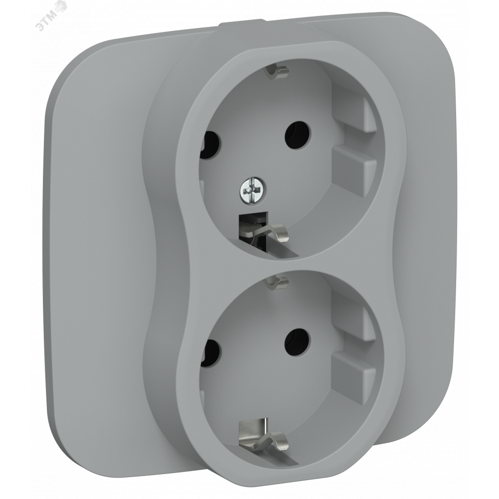 Описание FLITE Розетка 2-местная с заземлением без защитных шторок безвинтовое крепление 16А в сборе РС12-1-А-ФлС серый IEK FI-R21A-16-1-K03