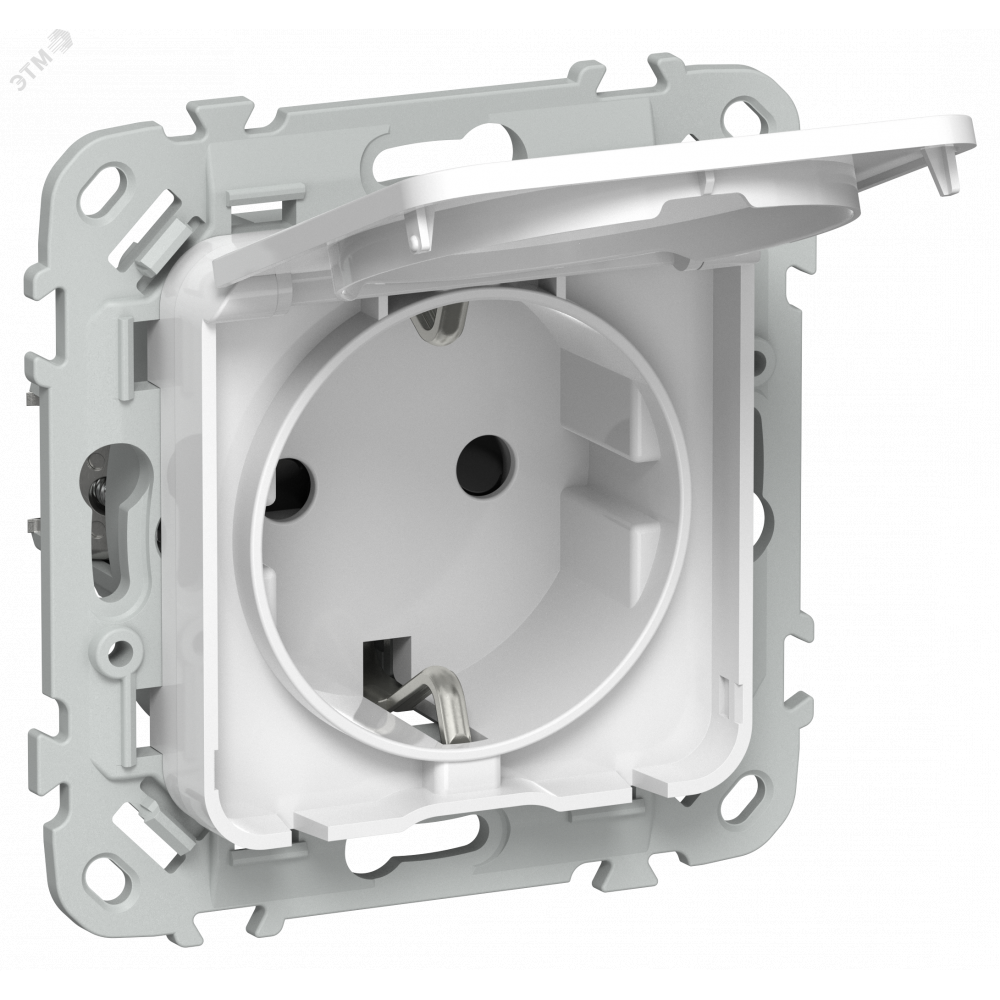 FLITE Розетка с заземлением с защитными шторками и крышкой безвинтовое крепление 16А IP44 РСшкр11-1-44-ФлБ белый IEK FI-R16-16-1-44-K01, Розетка скрытого монтажа