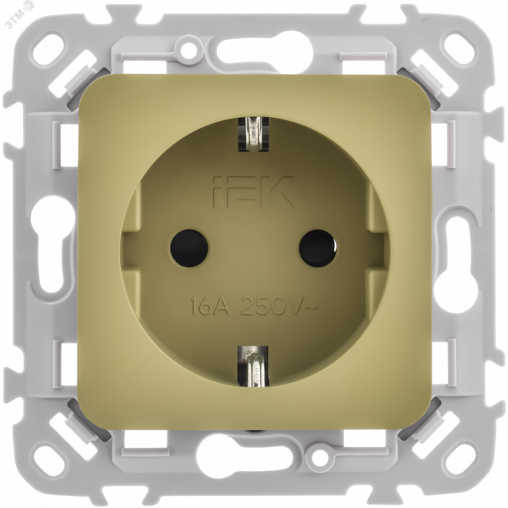Доставка FLITE Розетка с заземлением с защитными шторками безвинтовое крепление 16А РСш11-1-ФлО оливковый IEK FI-R14-16-1-K26