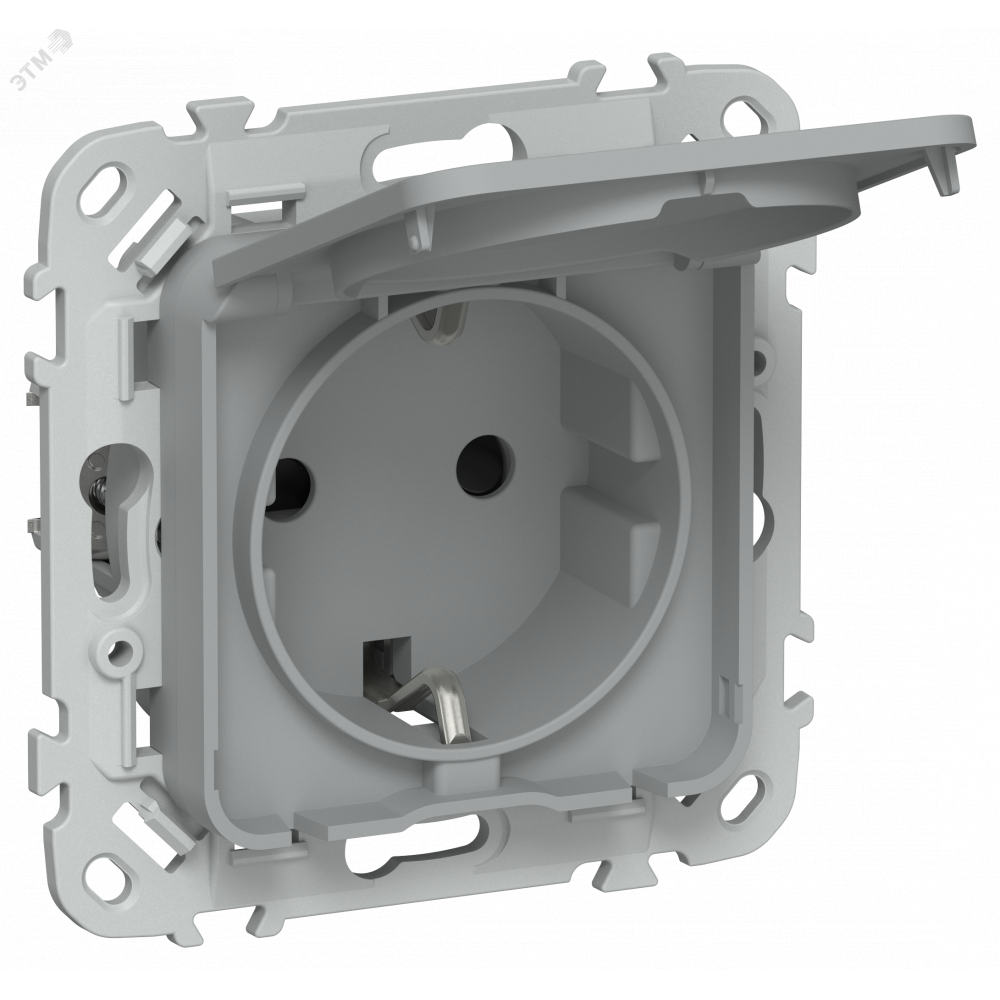 FLITE Розетка с заземлением с защитными шторками и крышкой безвинтовое крепление 16А IP44 РСшкр11-1-44-ФлС серый IEK FI-R16-16-1-44-K03, Розетка скрытого монтажа