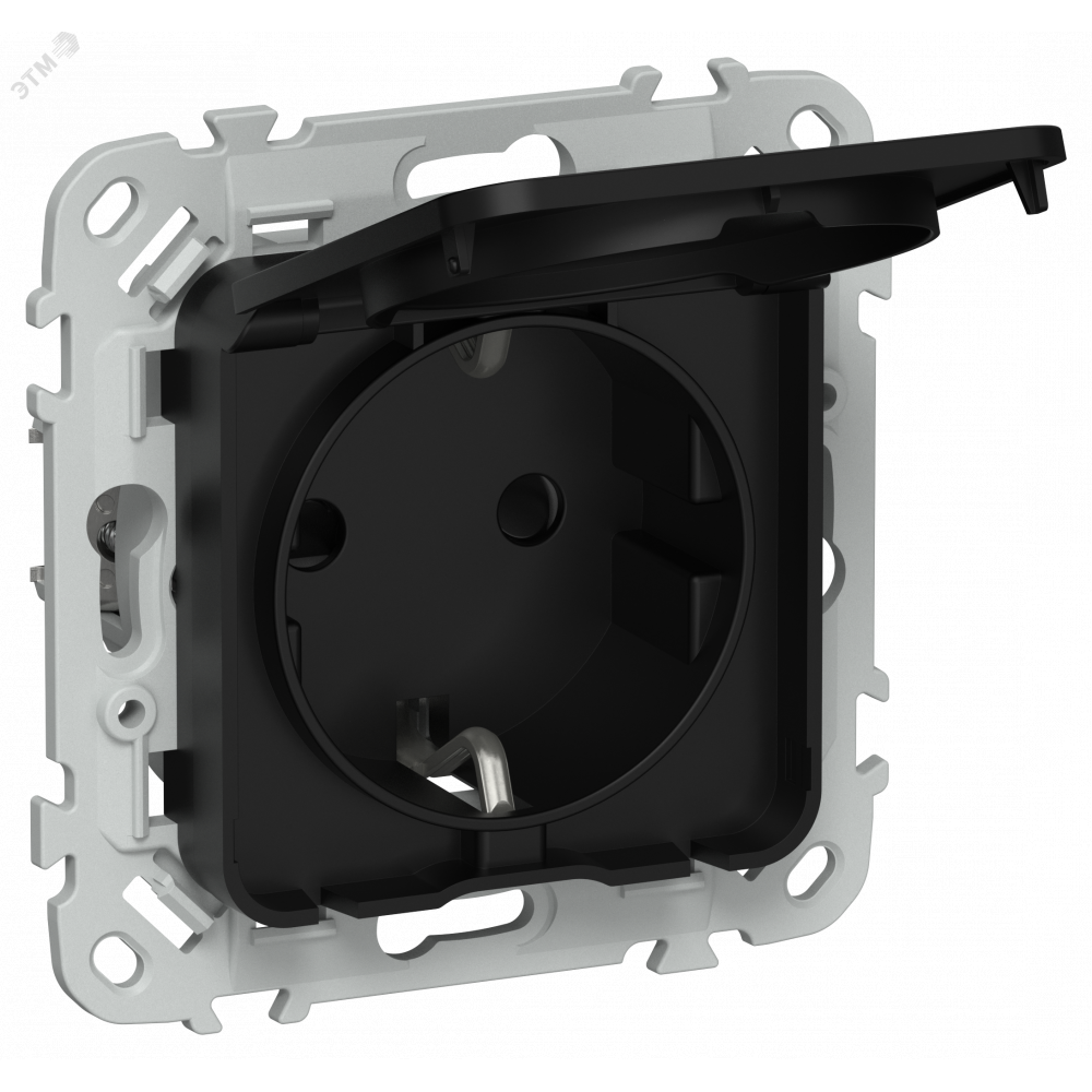 FLITE Розетка с заземлением с защитными шторками и крышкой безвинтовое крепление 16А IP44 РСшкр11-1-44-ФлЧ черный IEK FI-R16-16-1-44-K02, Розетка скрытого монтажа