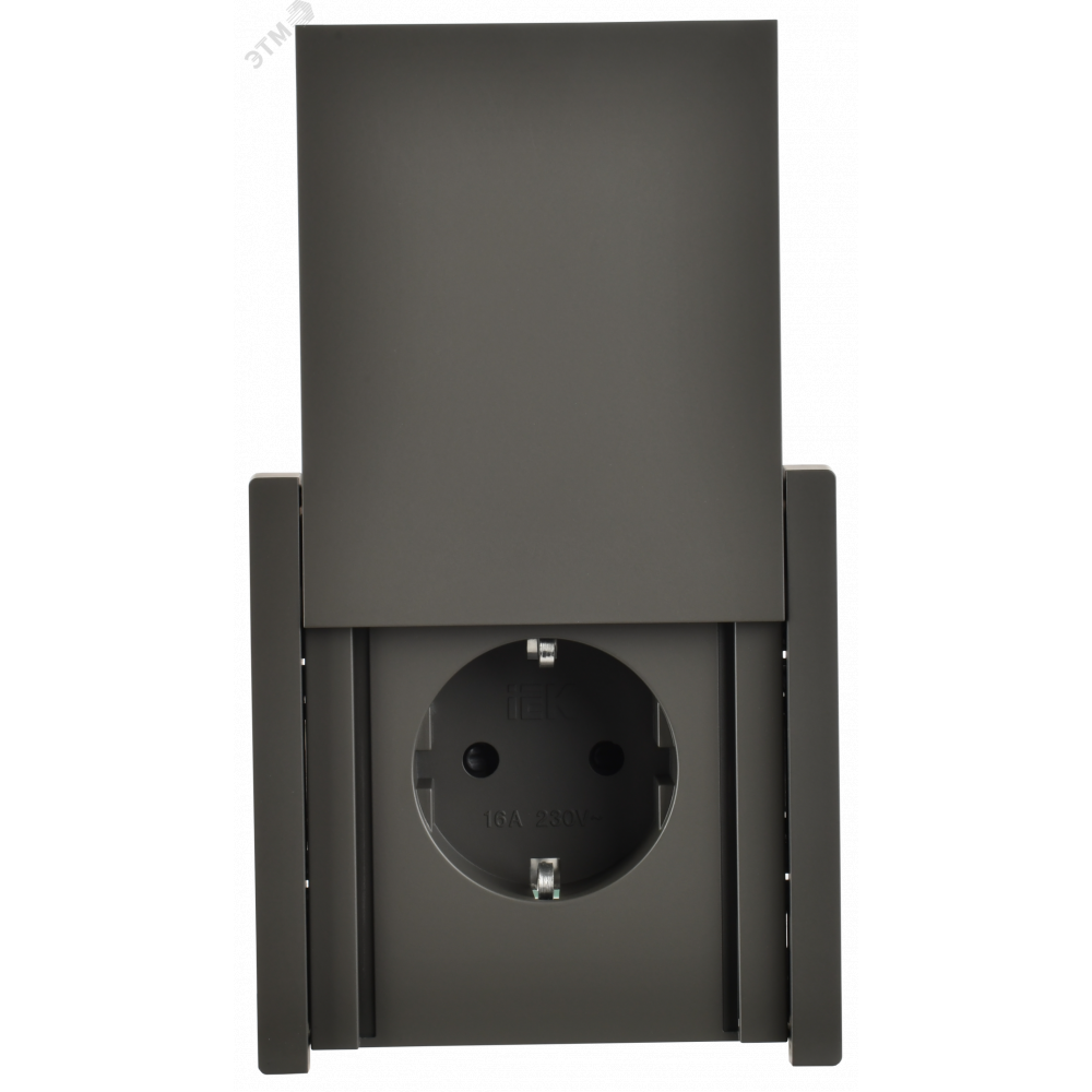 FORTE&PIANO Розетка 1-местная с заземлением с защитными шторками и крышкой безвинтовое крепление 16А IP44 FP319 серый IEK FP-R16-16-1-44-K03, Розетка скрытого монтажа