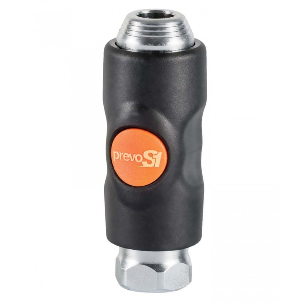 British Profile Pneumatic Couplings A range of pneumatic quick connect safety couplings and adapters from Prevost S1 series. Compatible with British profile fittings. The S1 series disconnects and safely decompresses with one button and incorporates an aerodynamic valve seal design to prevent leaks and optimise airflow. S1 series pneumatic couplings can help reduce energy costs and increase productivity by eliminating any significant pressure loss and dramatically reducing downtime and maintenance.