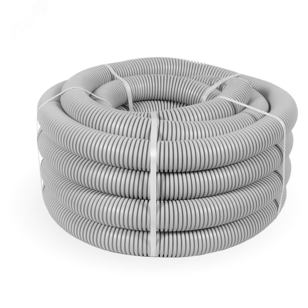 Описание Труба гофрированная ПНД л-гкая 350 Н безгалогенная(HF) стойкая к ультрафиолету серая с/з д40 (15м/960м уп/пал) PR02.0133