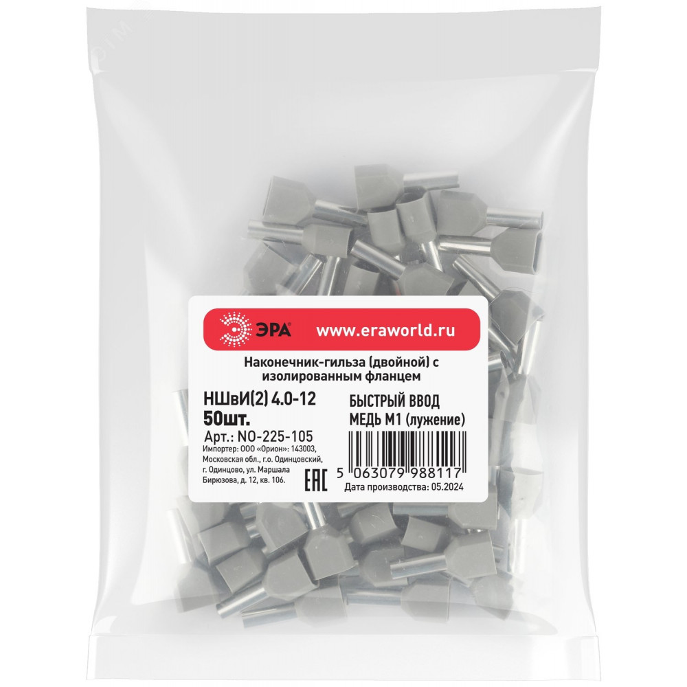 Описание Наконечник-гильза с изолированным фланцем (упаковка 50 шт.) NO-225-105 (двойной) НШвИ(2) 4,0-12 Б0063314