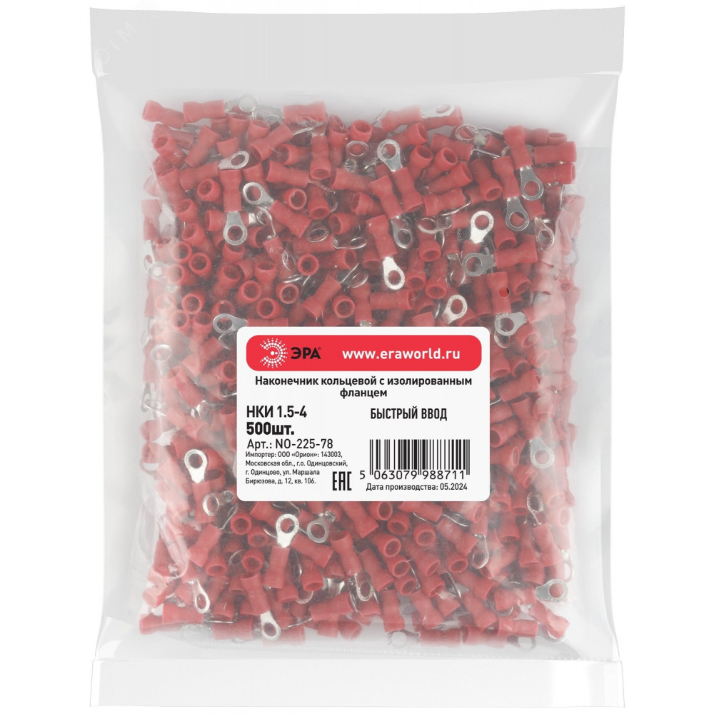 Наконечник кольцевой с изолированным фланцем (упаковка 500 шт.) NO-225-78 НКИ 1.5-4 Б0063309, Наконечник, гильза