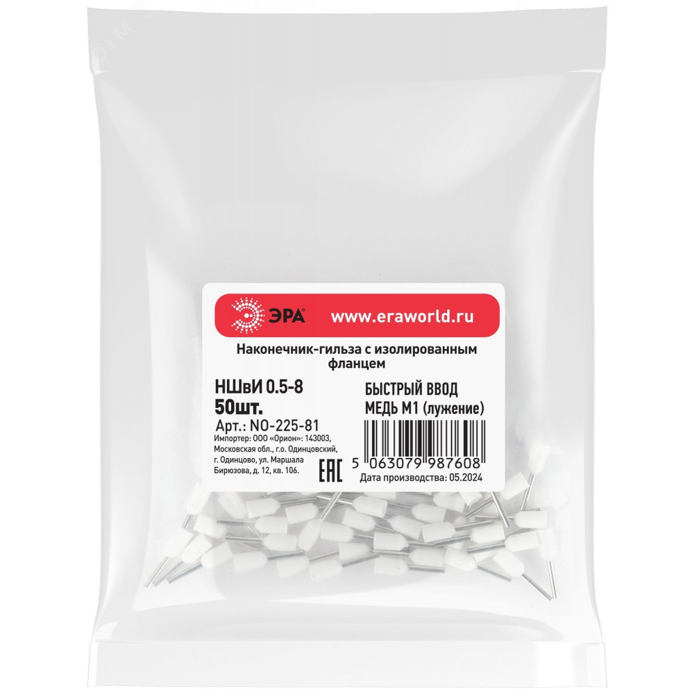 Наконечник-гильза с изолированным фланцем (упаковка 50 шт.) NO-225-81 НШвИ 0,5-8 Б0063367, Наконечник, гильза