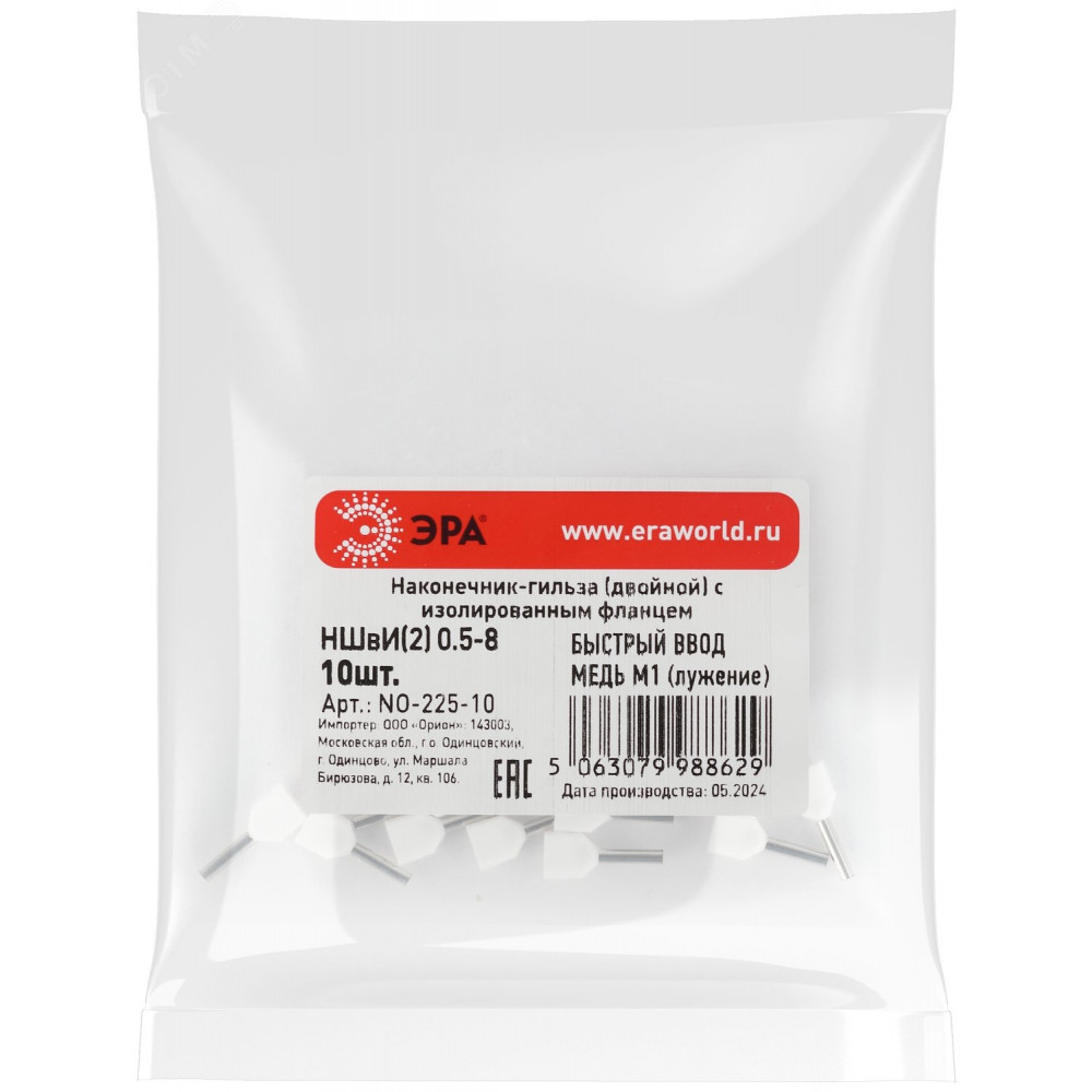 Доставка Наконечник-гильза с изолированным фланцем (упаковка 10 шт.) NO-225-10 (двойной) НШвИ(2) 0,5-8 Б0063277