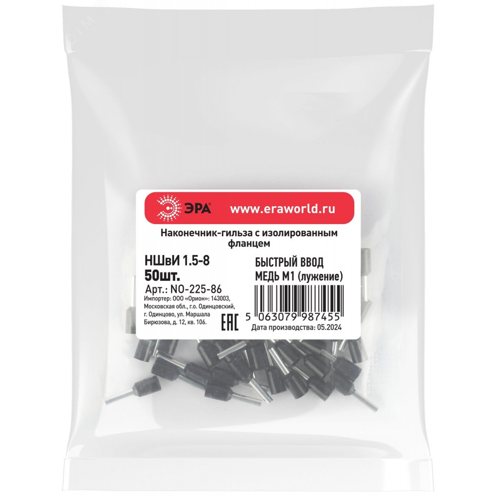 Наконечник-гильза с изолированным фланцем (упаковка 50 шт.) NO-225-86 НШвИ 1,5-8 Б0063406, Наконечник, гильза