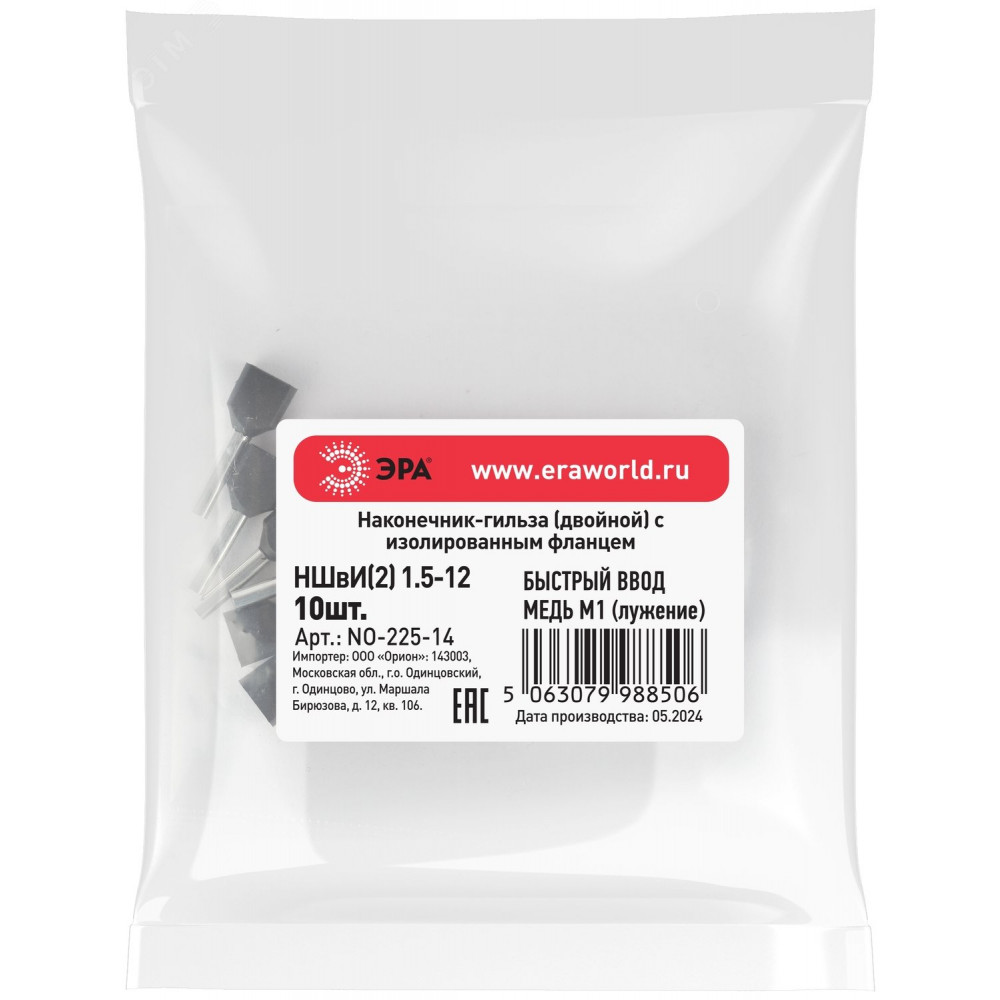 Доставка Наконечник-гильза с изолированным фланцем (упаковка 10 шт.) NO-225-14 (двойной) НШвИ(2) 1,5-12 Б0063321