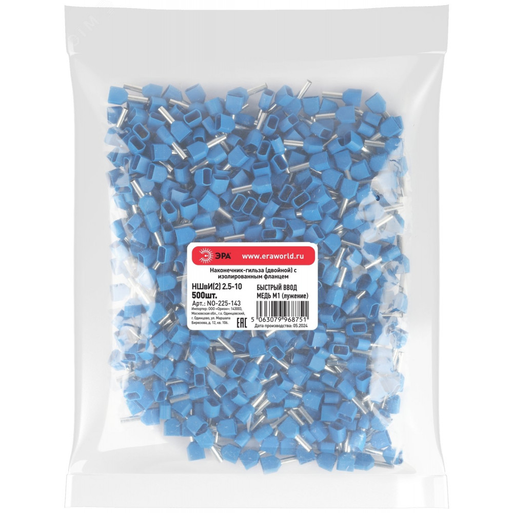 Наконечник-гильза с изолированным фланцем (упаковка 500 шт.) NO-225-143 (двойной) НШвИ(2) 2,5-10 Б0063943, Наконечник, гильза