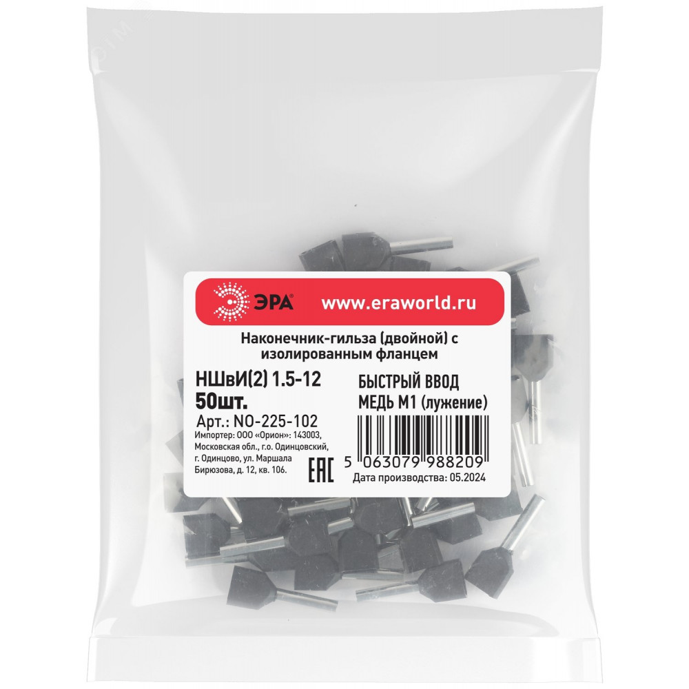 Описание Наконечник-гильза с изолированным фланцем (упаковка 50 шт.) NO-225-102 (двойной) НШвИ(2) 1,5-12 Б0063307