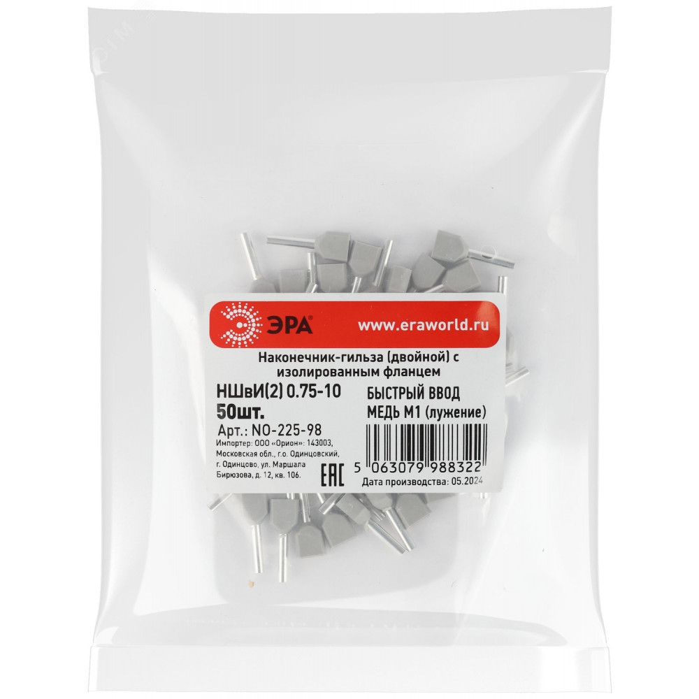 Описание Наконечник-гильза с изолированным фланцем (упаковка 50 шт.) NO-225-98 НШвИ(2) 0,75-10 Б0063272