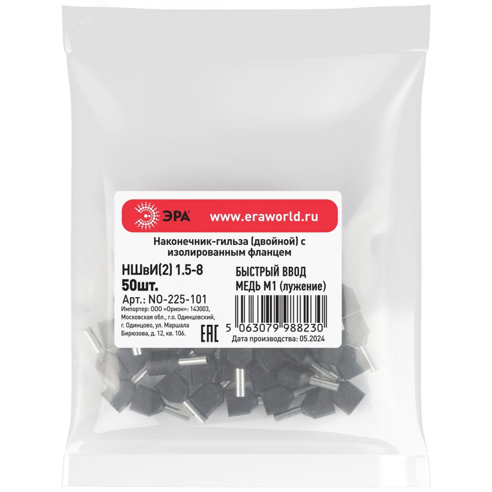 Описание Наконечник-гильза с изолированным фланцем (упаковка 50 шт.) NO-225-101 (двойной) НШвИ(2) 1,5-8 Б0063333