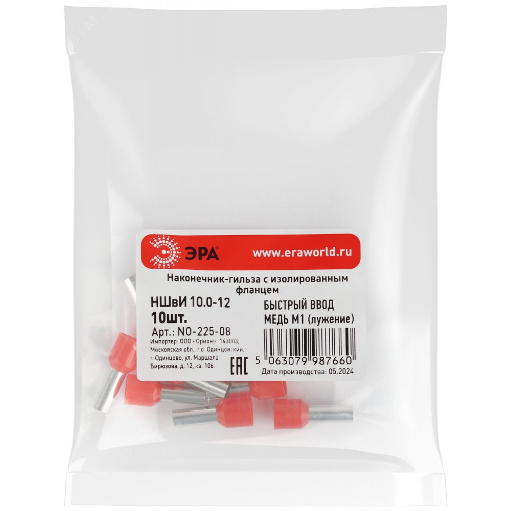 Наконечник-гильза с изолированным фланцем (упаковка 10 шт.) NO-225-08 НШвИ 10,0-12 Б0063355, Наконечник, гильза