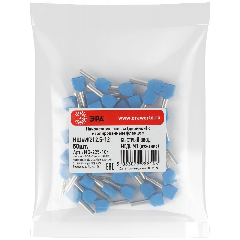 Доставка Наконечник-гильза с изолированным фланцем (упаковка 50 шт.) NO-225-104 (двойной) НШвИ(2) 2,5-12 Б0063289