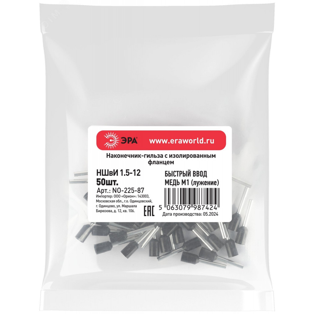 Наконечник-гильза с изолированным фланцем (упаковка 50 шт.) NO-225-87 НШвИ 1,5-12 Б0063407, Наконечник, гильза