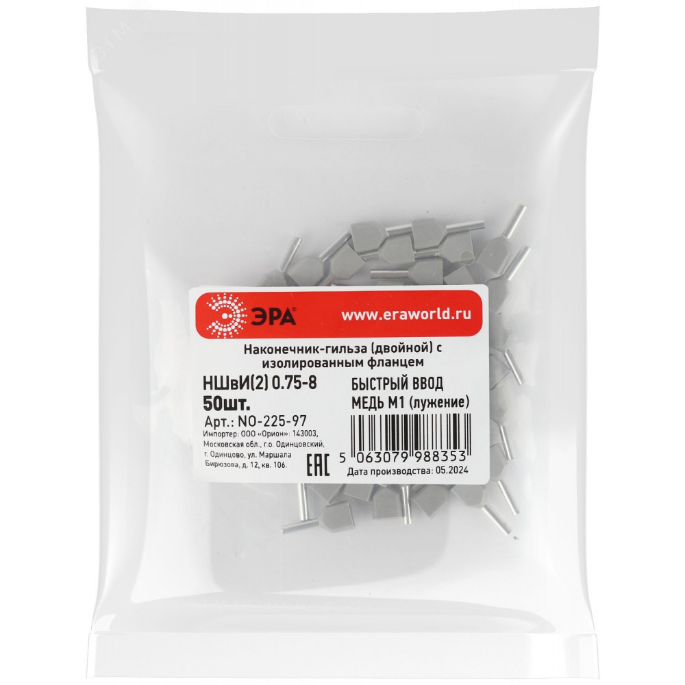 Наконечник-гильза с изолированным фланцем (упаковка 50 шт.) NO-225-97 НШвИ(2) 0,75-8 Б0063263, Наконечник, гильза