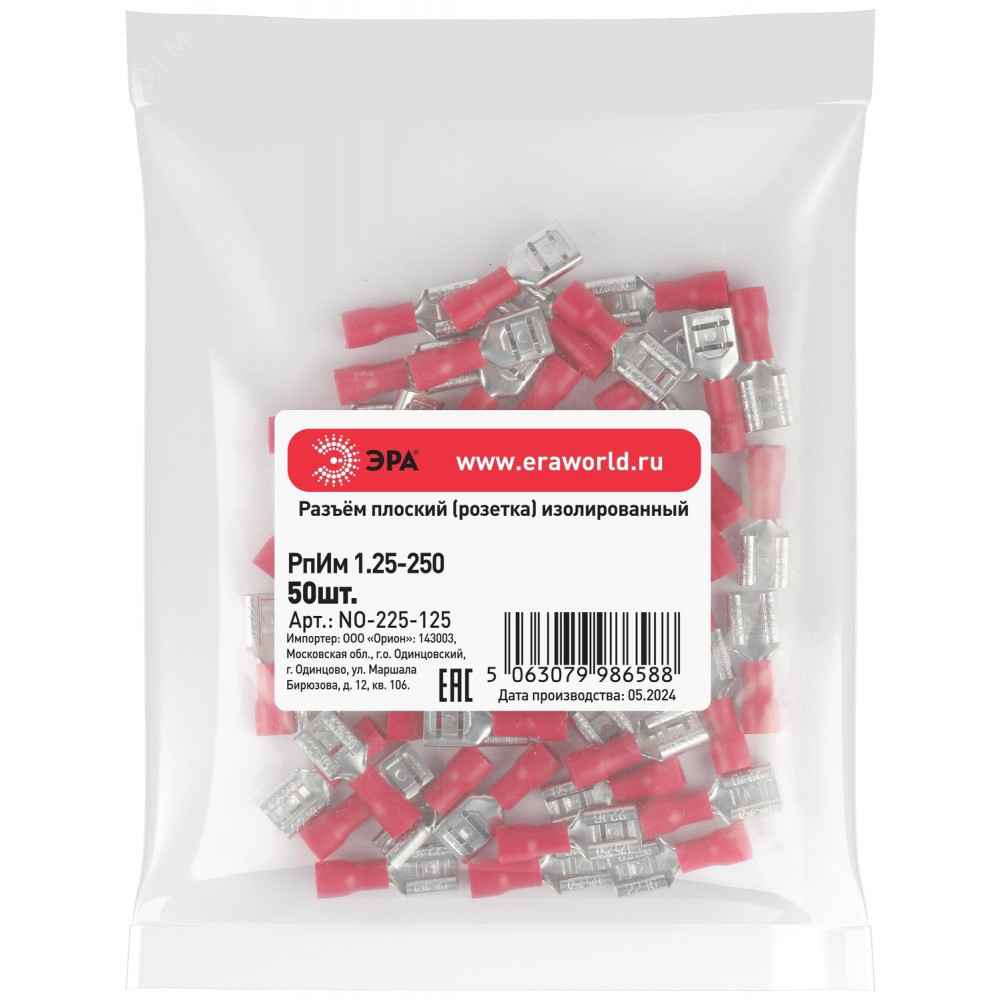 Доставка Разъем плоский NO-225-125 РпИм 1.25-250 изолированный -розетка- (упаковка 50 штук) Б0063365