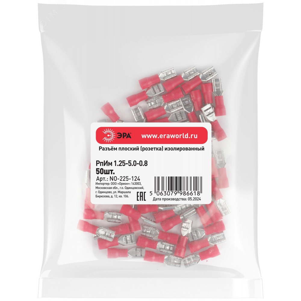 Разъем плоский NO-225-124 РпИм 1.25-5.0-0.8 изолированный -розетка- (упаковка 50 штук) Б0063369, Наконечник, гильза