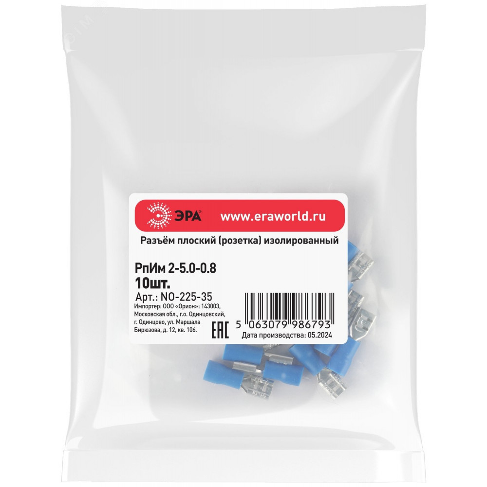 Разъем плоский NO-225-35 РпИм 2-5.0-0.8 изолированный -розетка- (упаковка 10 штук) Б0063359, Наконечник, гильза