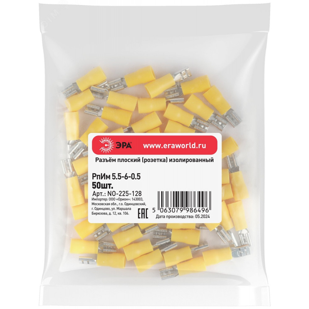 Разъем плоский NO-225-128 РпИм 5.5-6-0.5 изолированный -розетка- (упаковка 50 штук) Б0063370, Наконечник, гильза