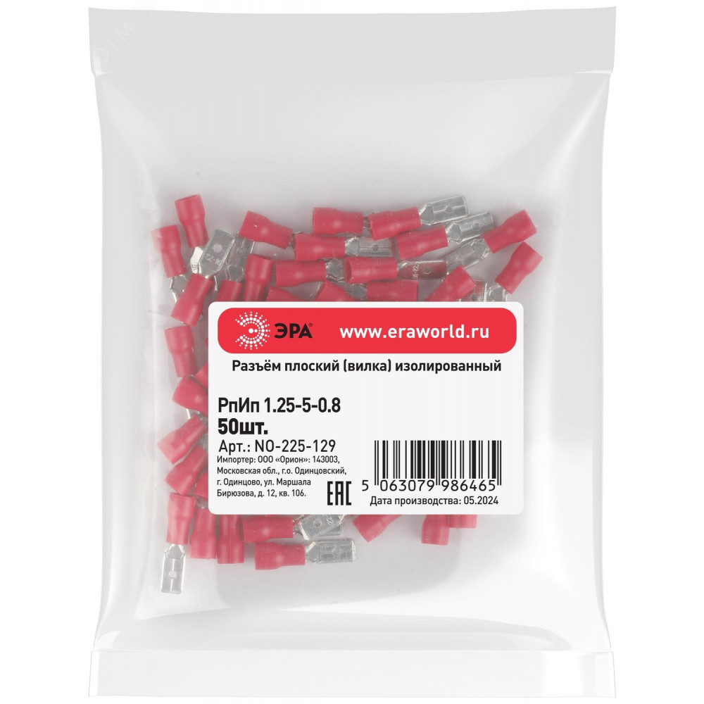 Разъем плоский NO-225-129 РпИп 1.25-5-0.8 изолированный -вилка- (упаковка 50 штук) Б0063371, Наконечник, гильза
