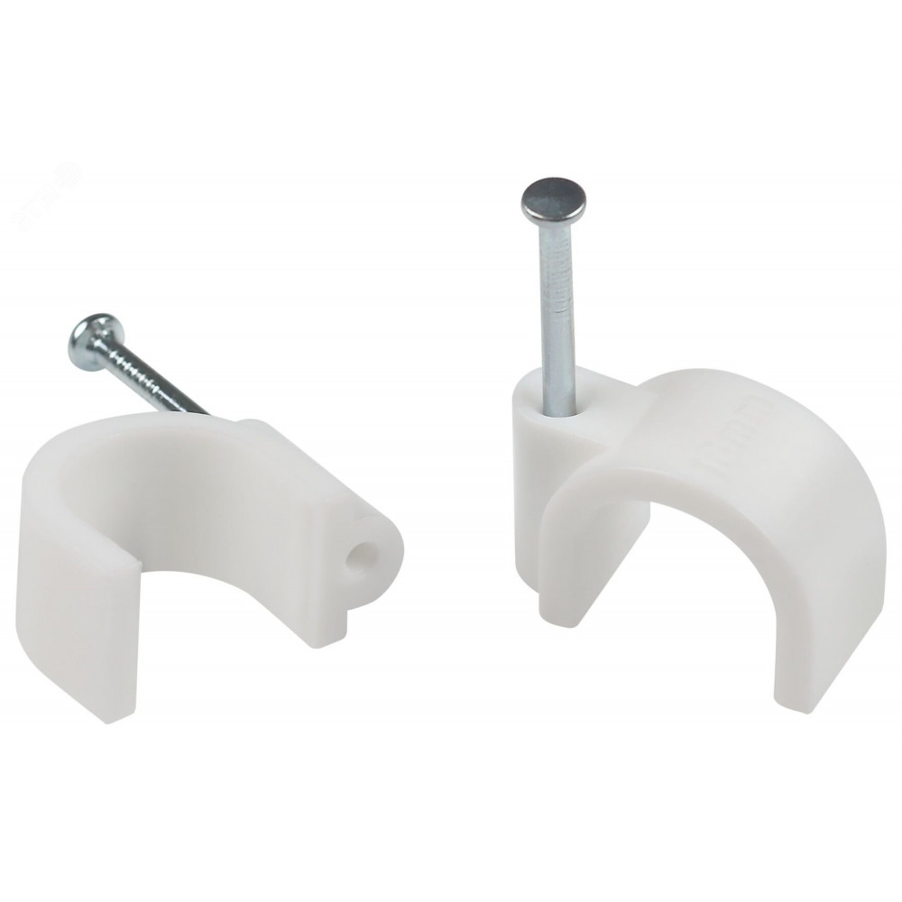 Описание Скоба пластиковая крепежная круглая 12 мм белая NO-224-573 (50 шт/уп) Б0066643