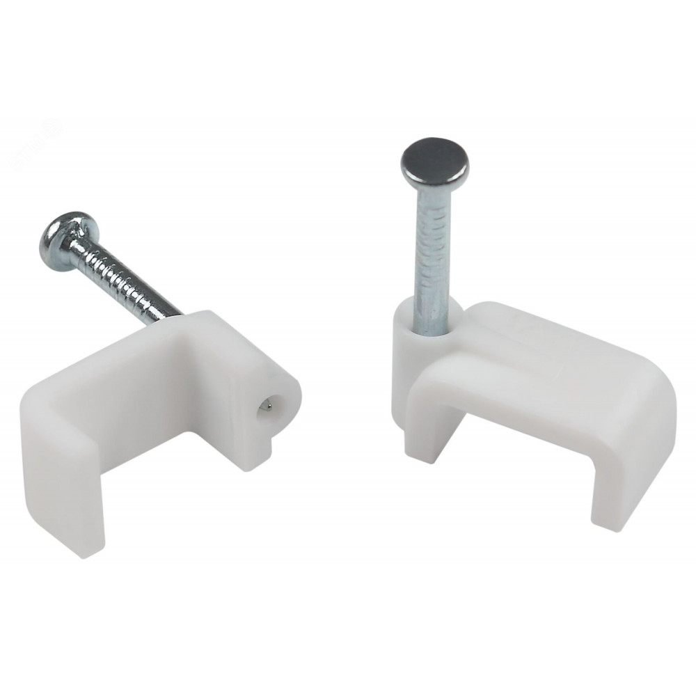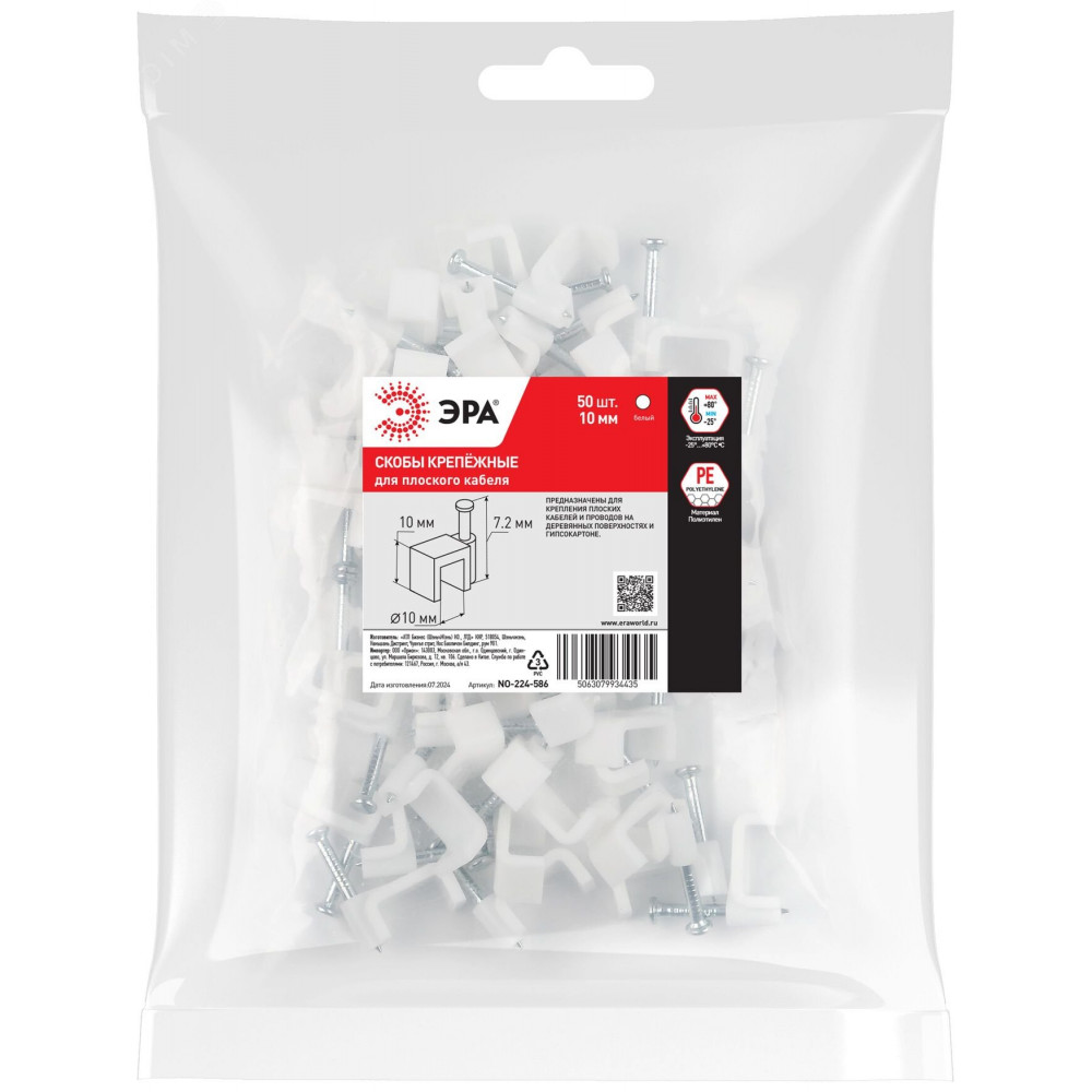 Описание Скоба пластиковая крепежная плоская 10 мм белая NO-224-586 (50 шт/уп) Б0066652